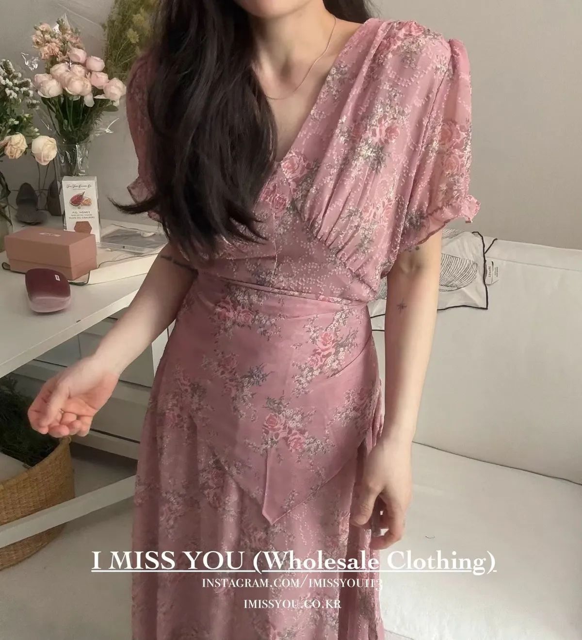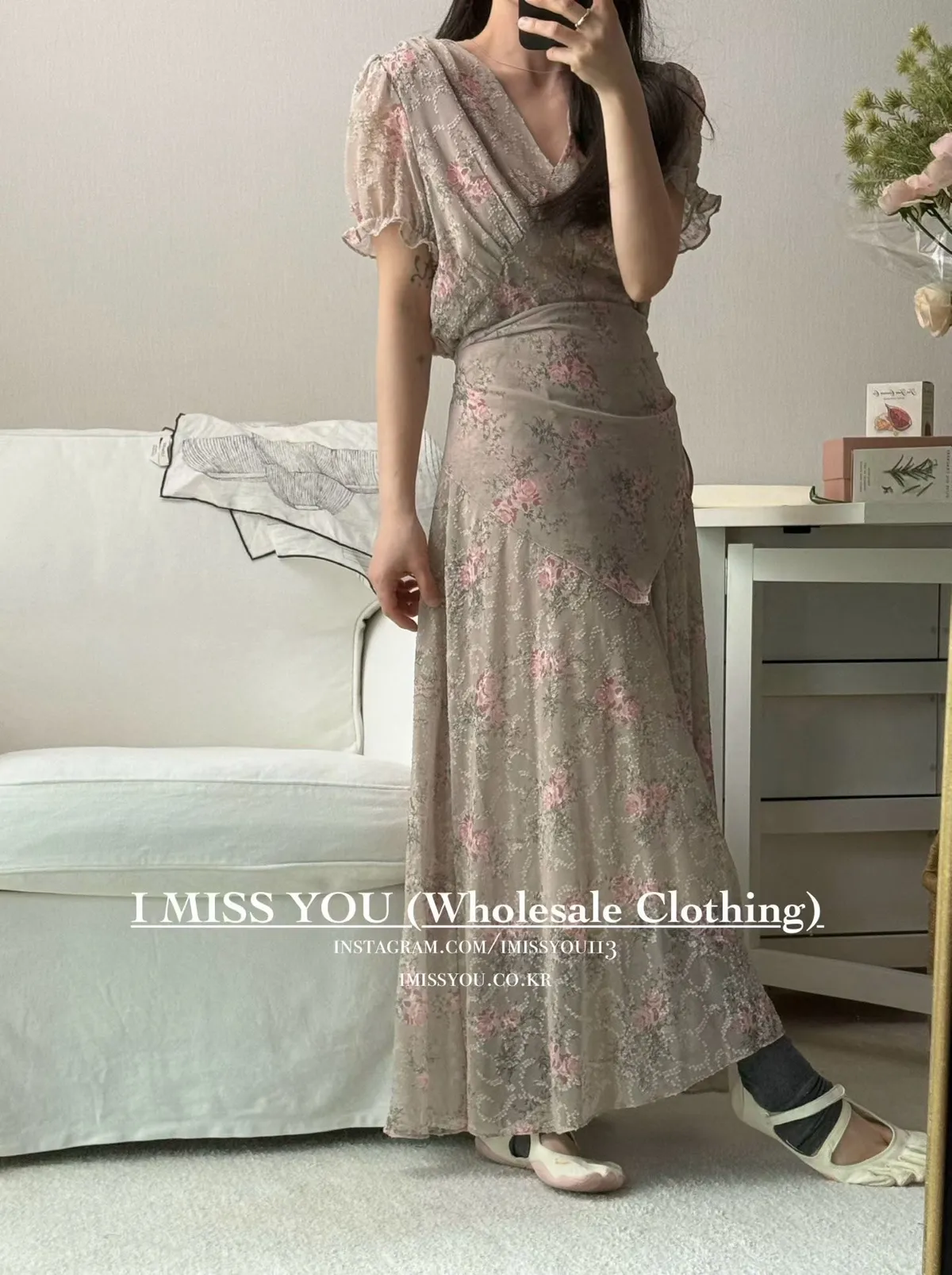 柔霧花語輕盈雪紡洋裝